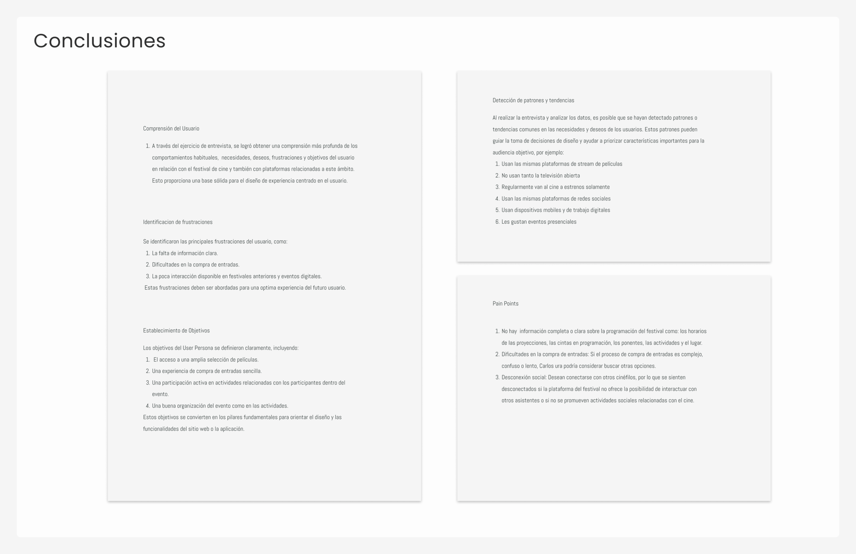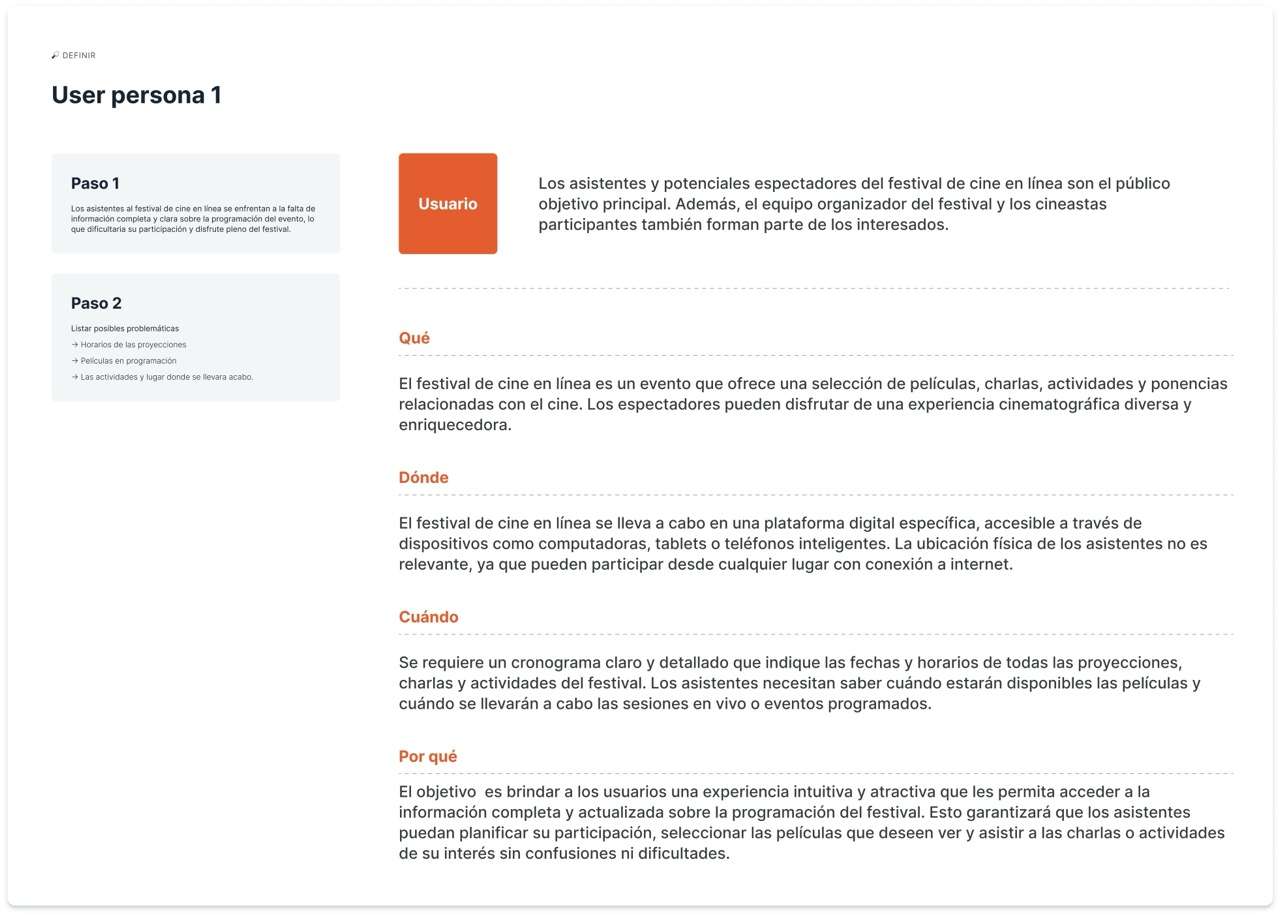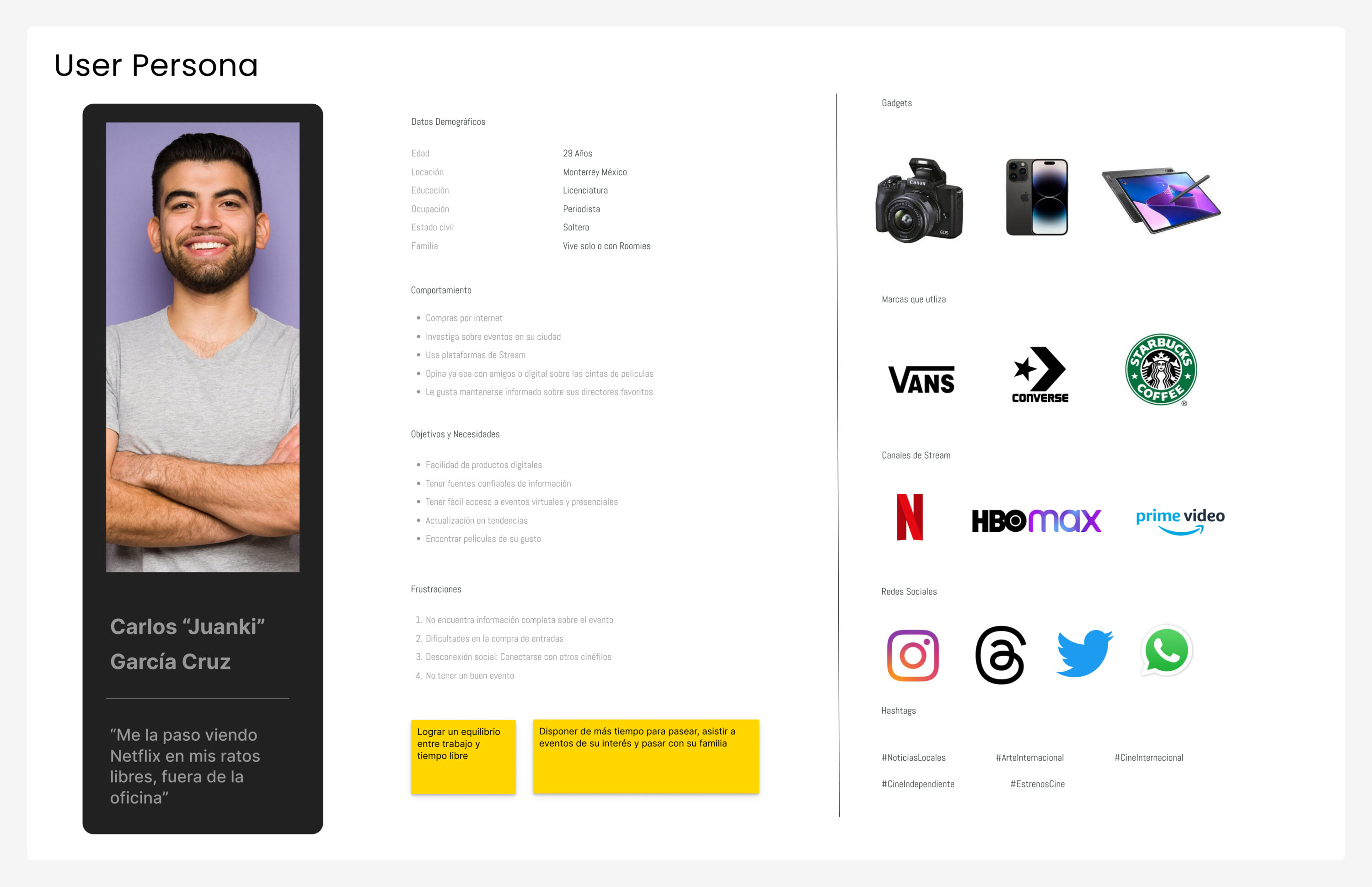 Gracias a la información recabada con entrevistas, se pudo llegar a una User Persona que pudiera cumplir con los objetivos de consumo de la plataforma de cine.