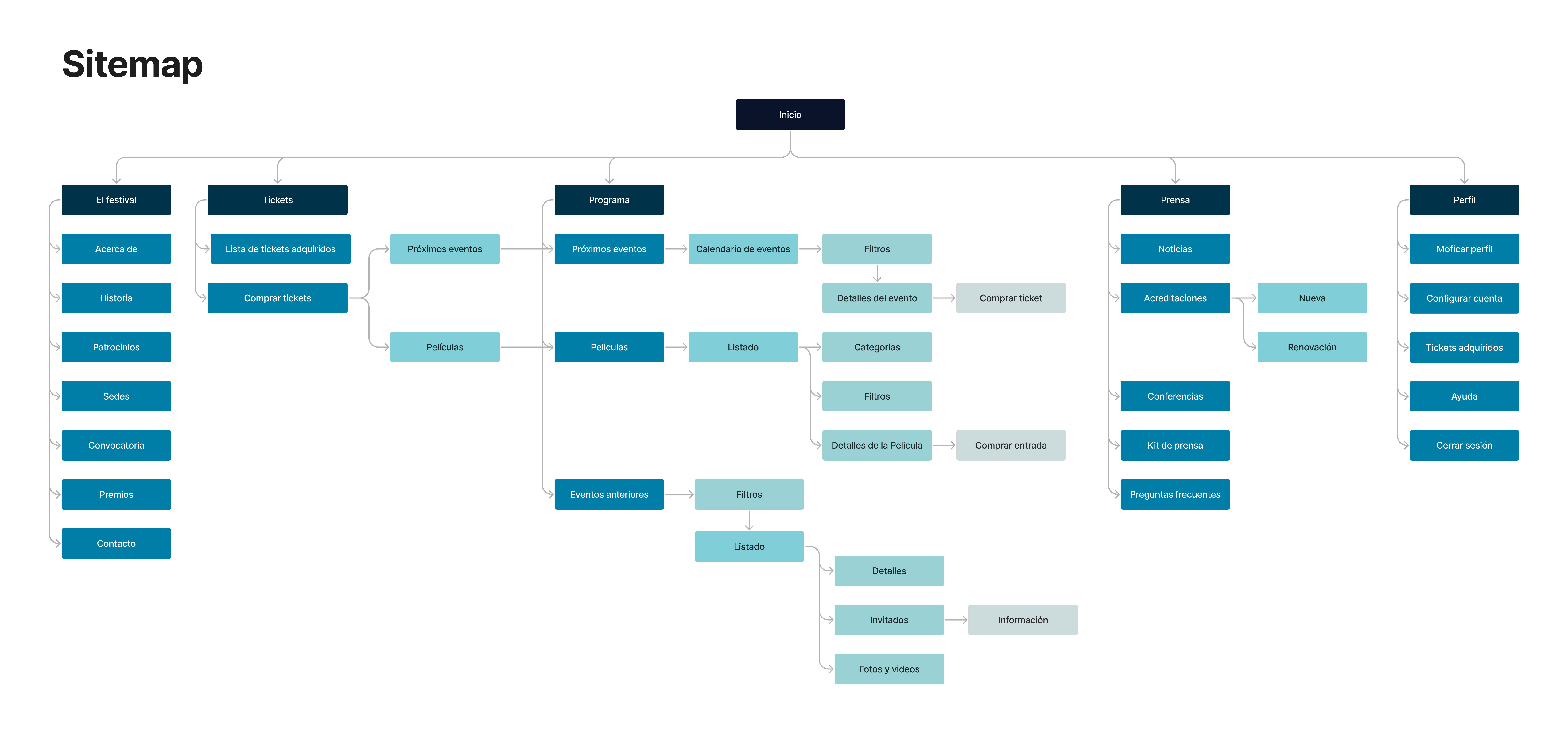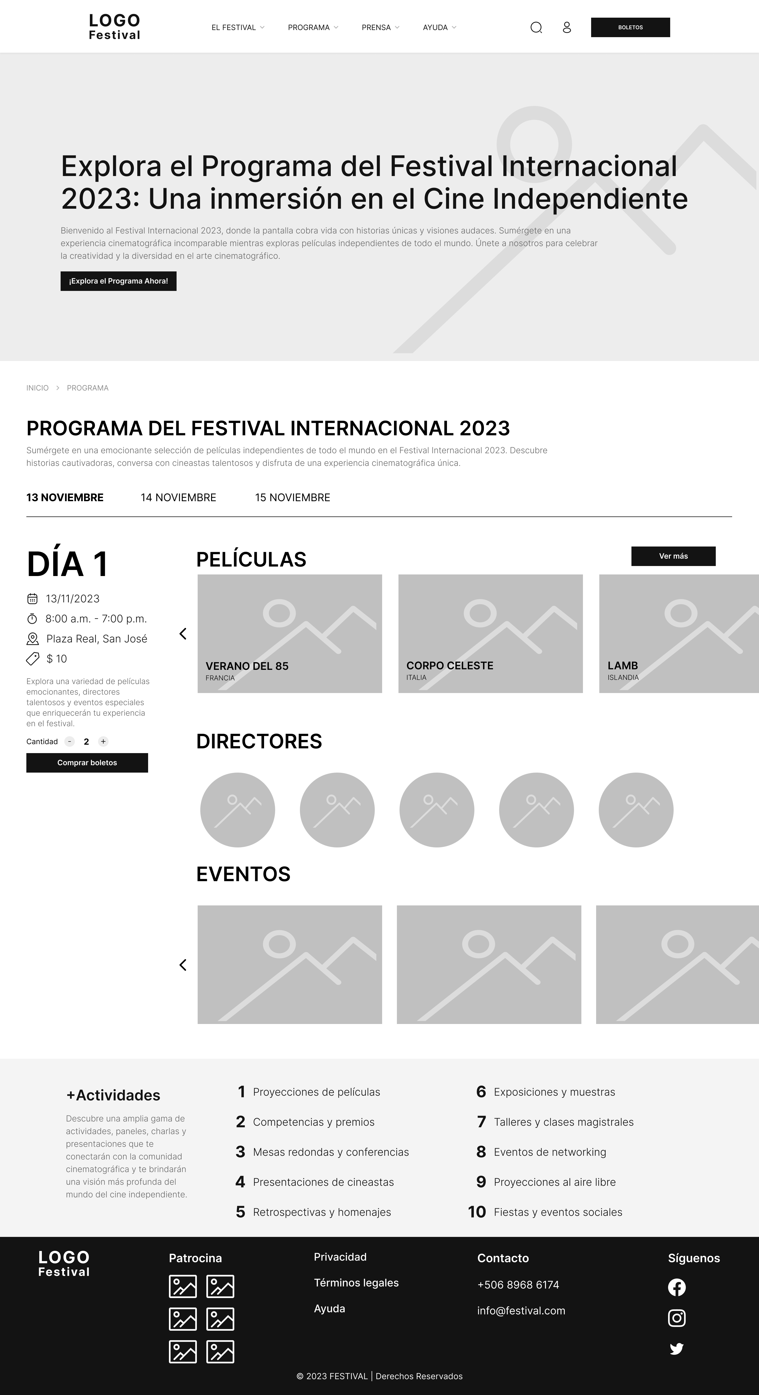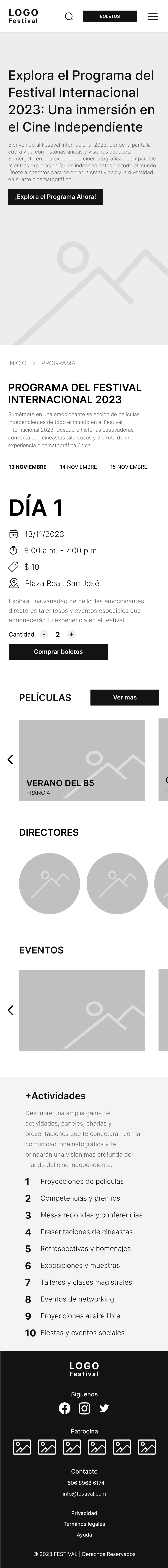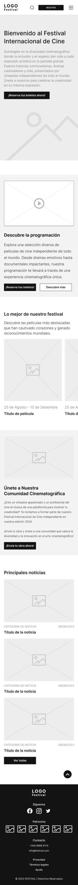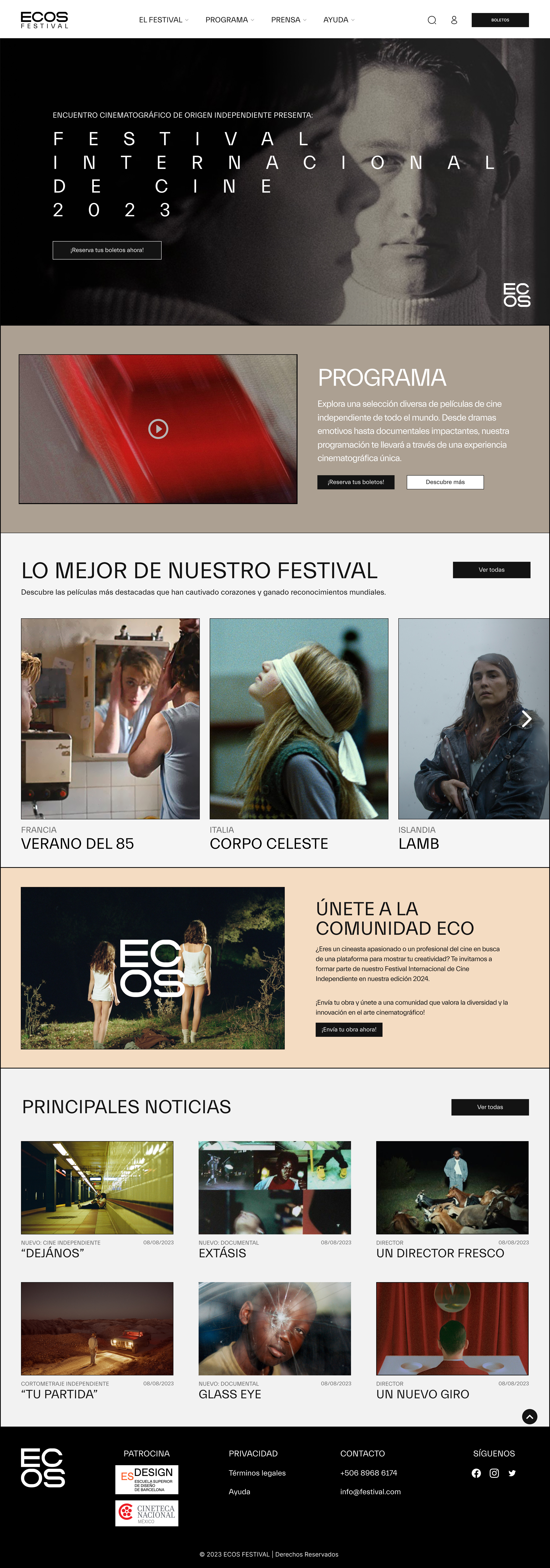 Se llegó a un prototipo del sitio web que se probó con 5 personas para tomar en cuenta la funcionalidad y accesibilidad. Dando como resultado una plataforma para un festival de cine llamado “ECOS”.