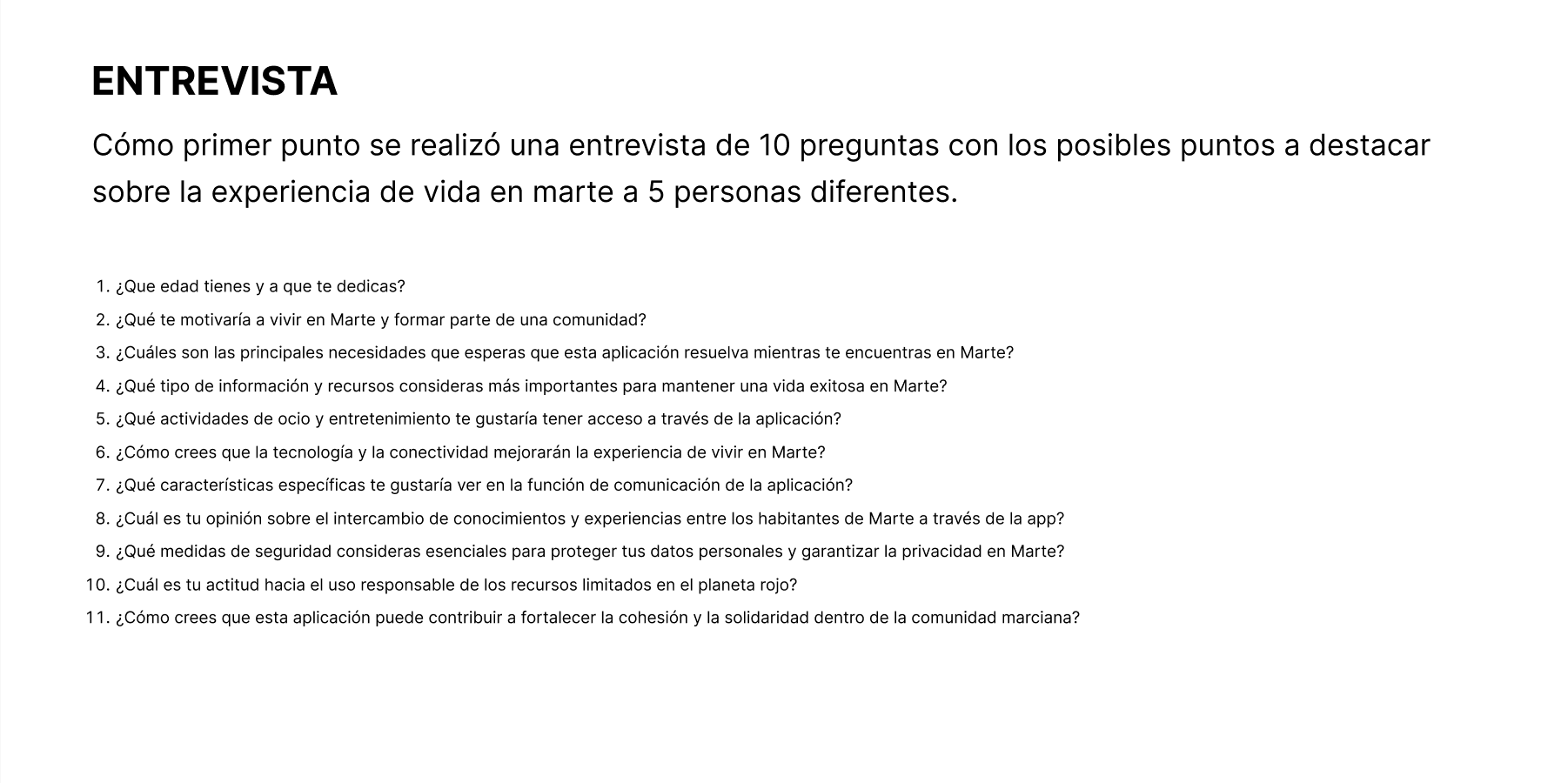 Es pensada en un caso de estudio hipotético en el que dicha comunidad tenga un sistema para poder comunicarse, hacer tareas y más dentro de su experiencia en el planeta rojo.