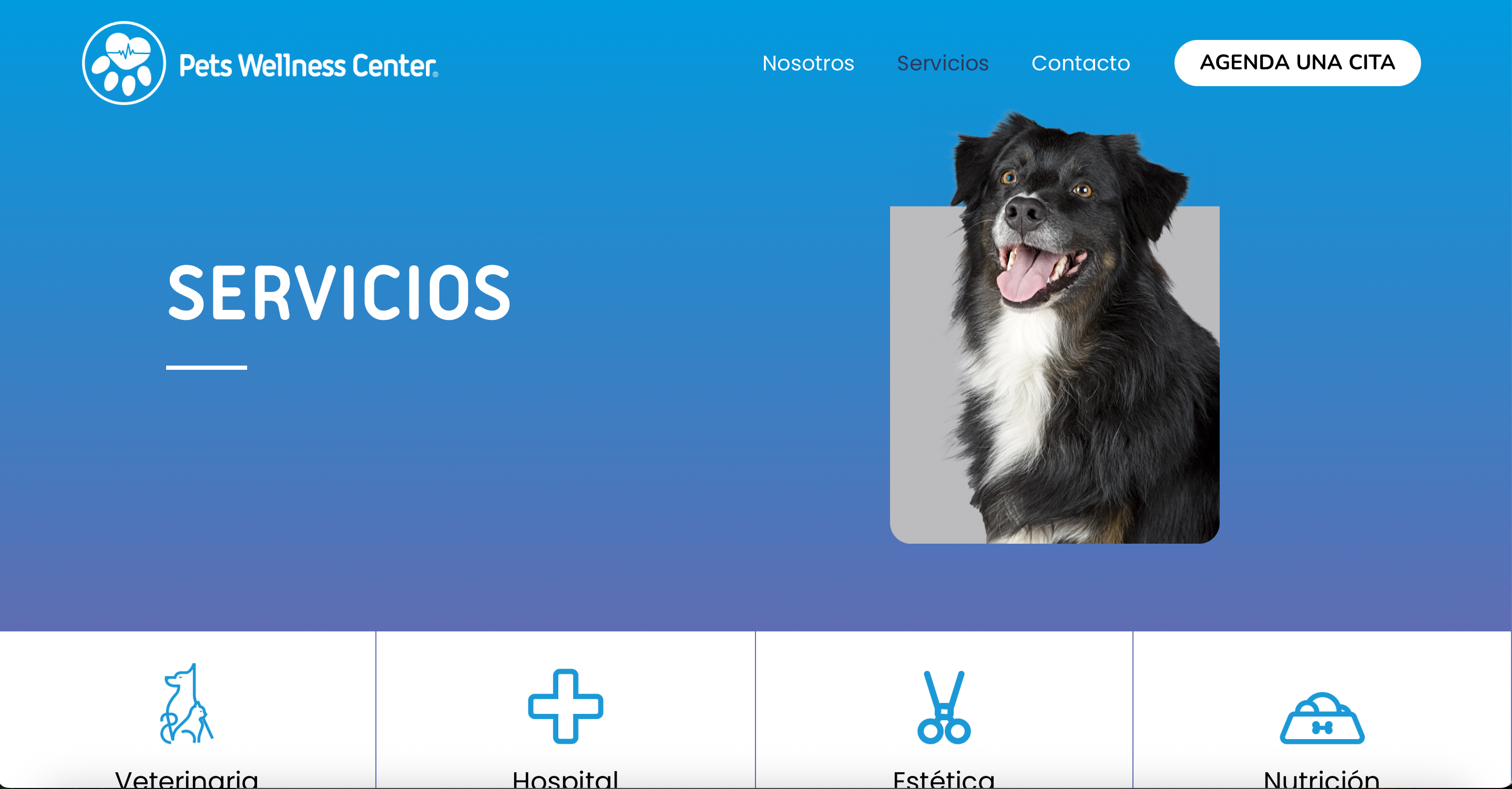 Pets Wellness Center is a veterinary clinic in Mexico City that focuses on integrative and preventive care for pets. The goal of the website was to communicate a sense of trust, warmth, and professional care while positioning the clinic as a modern and reliable option for pet owners.